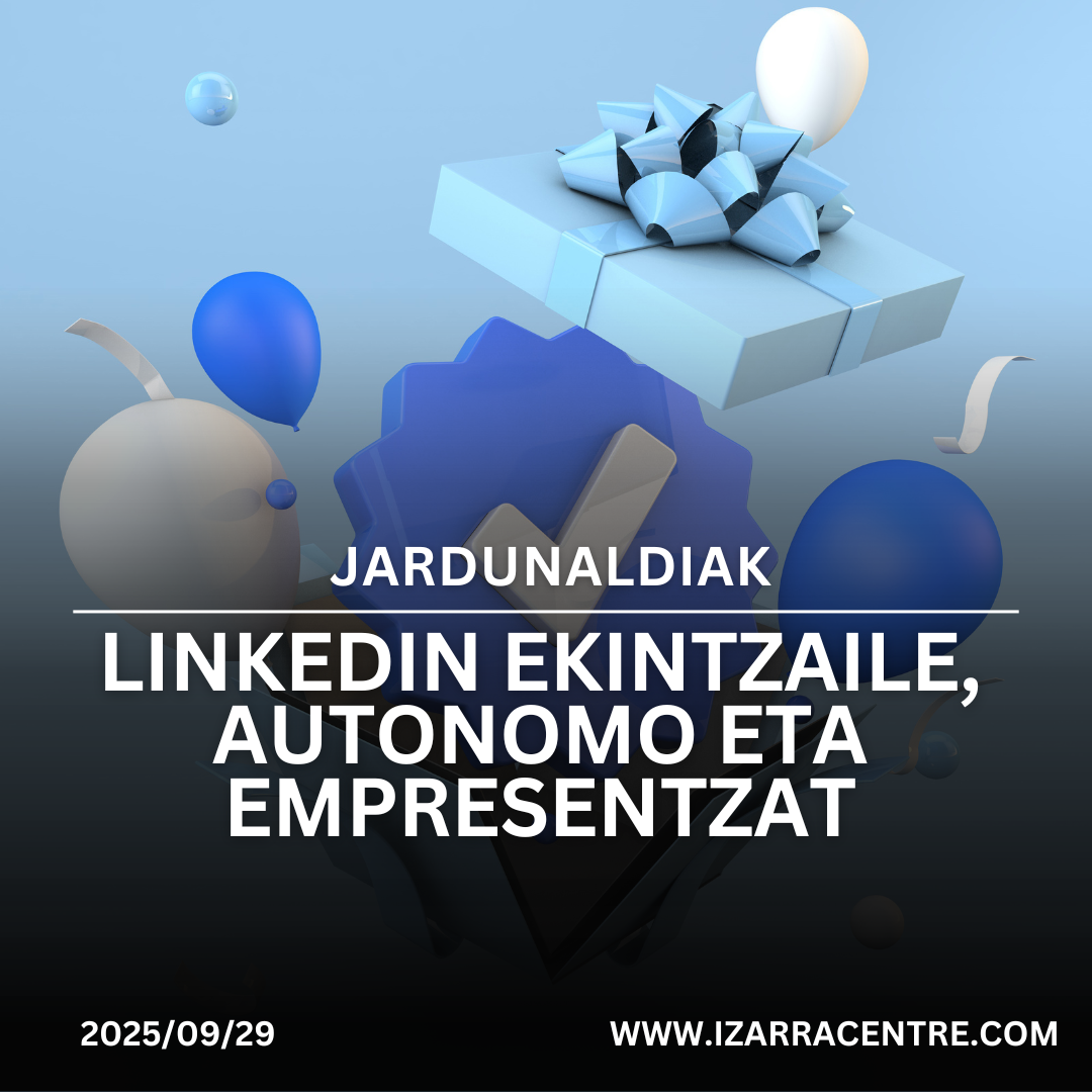 LinkedIn sare sozial profesionala baino askoz gehiago da: tresna nagusia da zure negozioari ikusgarritasuna emateko. 📅 Datak: Urriak 14 eta 25ean 🕘 Ordutegia: 09:30 – 11:30📍 Tokia: Izarra Centre (Ermua)👩🏫 Imparte: H2B Business Group Bi tailer praktiko horiekin honako hauek ikasiko dituzu: 👉 Norentzat: LinkedInen duten presentzia eta estrategia hobetzeko interesa duten inguruko enpresentzat, ekintzaileentzat […]