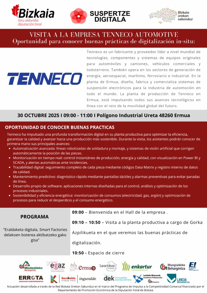 La planta de Tenneco Automotive en Ermua abre sus puertas para mostrar sus avances en digitalización industrial y gestión de datos aplicados a los procesos productivos.